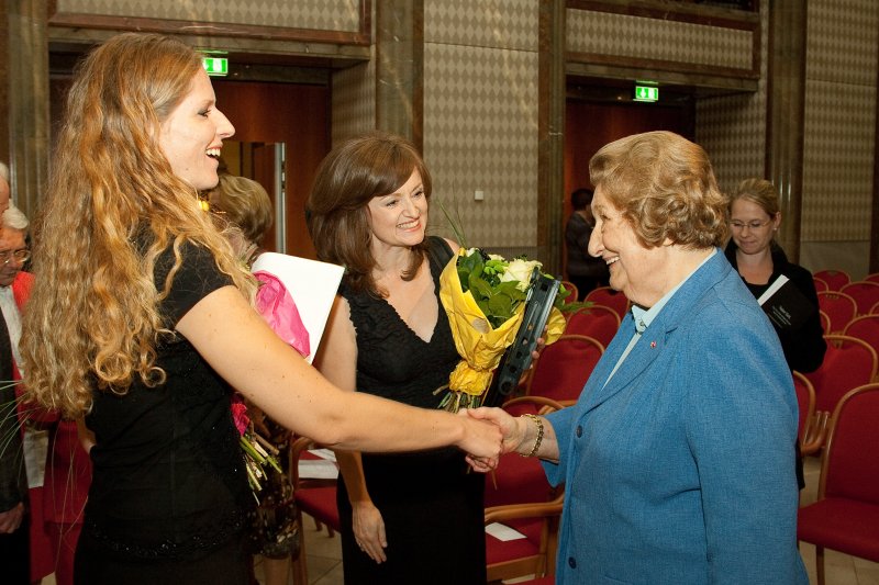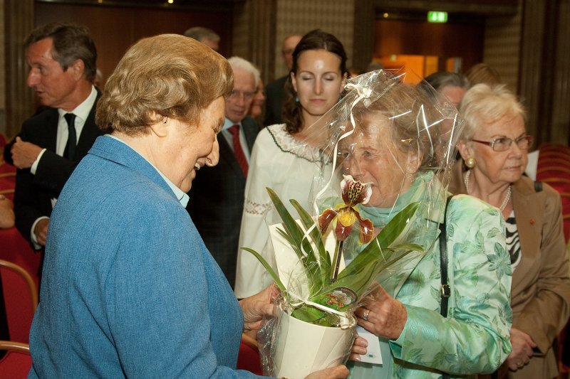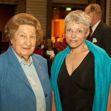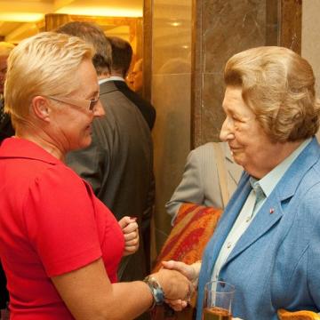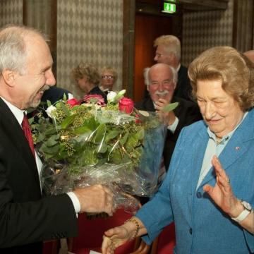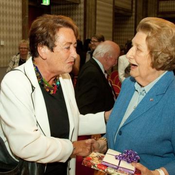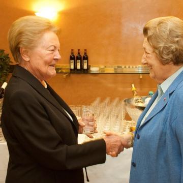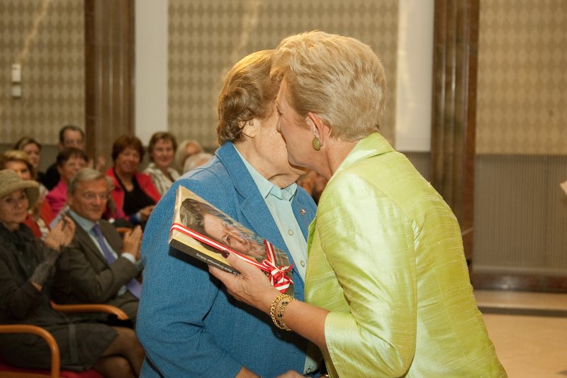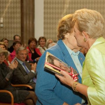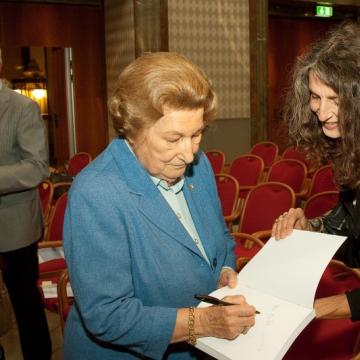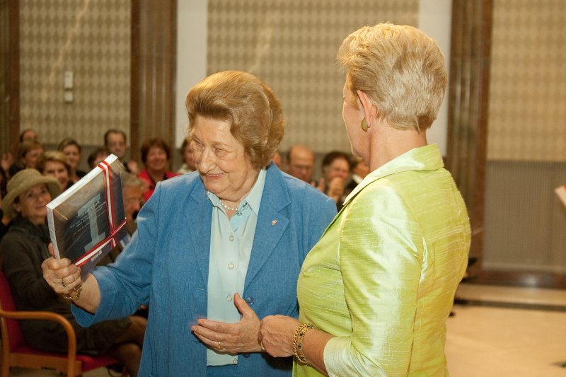 Bundesministerin a. D. und Stiftungsvorstand der Dr. Maria Schaumayer Stiftung Maria Rauch-Kallat übereichte der Jubilarin nach ihrer Würdigung einen Jubiläumsband zum 20 jährigen Stiftungsbestehen mit Beiträgen vieler Preisträgerinnen.